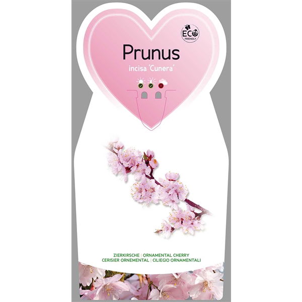 De Prunus ‘Cunera’ of sierpruim bloeit in maart-april rijkelijk met kleine lichtroze bloemen. De bloemen zitten al voor het blad aan de boom. Het blad verkleurd in het najaar naar rood-oranje. De uiteindelijke hoogte is max 400 cm. Deze prunus houdt van een standplaats in volle zon of halfschaduw en doet het goed in iedere grondsoort, is goed winterhard en zeewind én luchtverontreiniging tolerant. Door zijn bescheiden grootte, ideaal voor de kleine (stads)tuin.