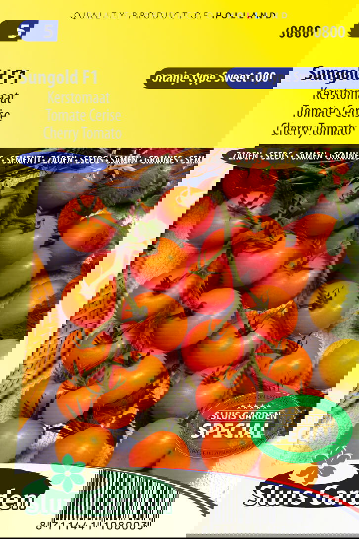 Lange trossen met heerlijke oranje kersgrote tomaten. Lekker als snack of in de salade. Een hybride voor zowel kas- als buitenteelt. Ook een opkweek in grote potten behoort zeker tot de mogelijkheden. Zaaien in een zaaibakje, zodra hanteerbaar verspenen in (pers)potten. Later uitplanten in kas of buiten op een warme beschutte plaats. Na ongeveer 4 vruchttrossen de top uit de plant knijpen. De uitlopers in de oksels van de bladeren altijd wegnemen (dieven). Na verloop van tijd wat bijmesten met tomatenvoeding.