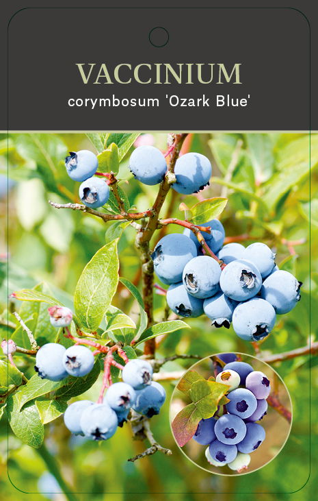 De ‘Ozark Blue’ produceert grote blauwe bessen met een zoete smaak die eind augustus rijp zijn om te plukken.