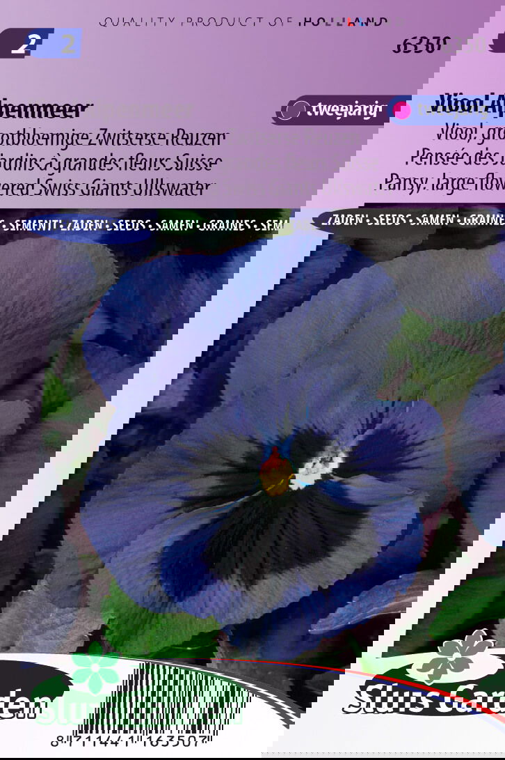 Diepblauw met duidelijke zwarte vlek. Ook wel Alpenmeer genoemd. De bloemen van de viooltjes zijn eetbaar. In principe zijn alle viooltjes tweejarig, maar de eenjarige cultuur is aan te raden. Vroeg in het voorjaar zaaien, eventueel onder koud glas, verspenen of direct van het plantbed uitplanten op plaats van bestemming. Geel gearceerd is tweejarige teelt.