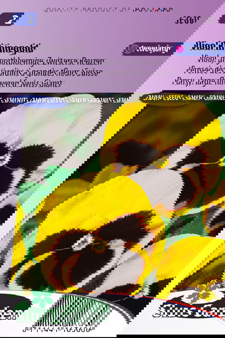 Reuzenbloemig, zuiver goudgeel en zonder vlek. De bloemen van de viooltjes zijn eetbaar. In principe zijn alle viooltjes tweejarig, maar de eenjarige cultuur is aan te raden. Vroeg in het voorjaar zaaien, eventueel onder koud glas, verspenen of direct van het plantbed uitplanten op plaats van bestemming. Geel gearceerd is tweejarige teelt.