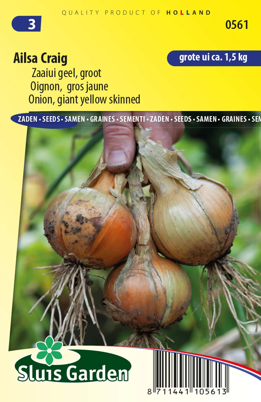 Ailsa Craig vormt zeer grote, bolronde uien, tot vaak wel ruim 1 – 1,5 kg. De smaak van deze ui is mild tot lekker licht zoet. De uien zijn ook redelijk lang bewaarbaar. Dun zaaien direct in de vollegrond op regels en het zaad goed af-dekken. De grond continu vochtig houden. Na opkomst niet al teveel uitdunnen. De uien oogsten als het loof is afgestorven. Uien en loof ongeveer 1 week op het veld laten nadrogen.